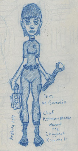 I've had the idea for Ines in my head for a while, but now I finally had the impetuous to draw her.  Been scared of the whole 'creating a toon' thing.  Yay for daily forced drawing!